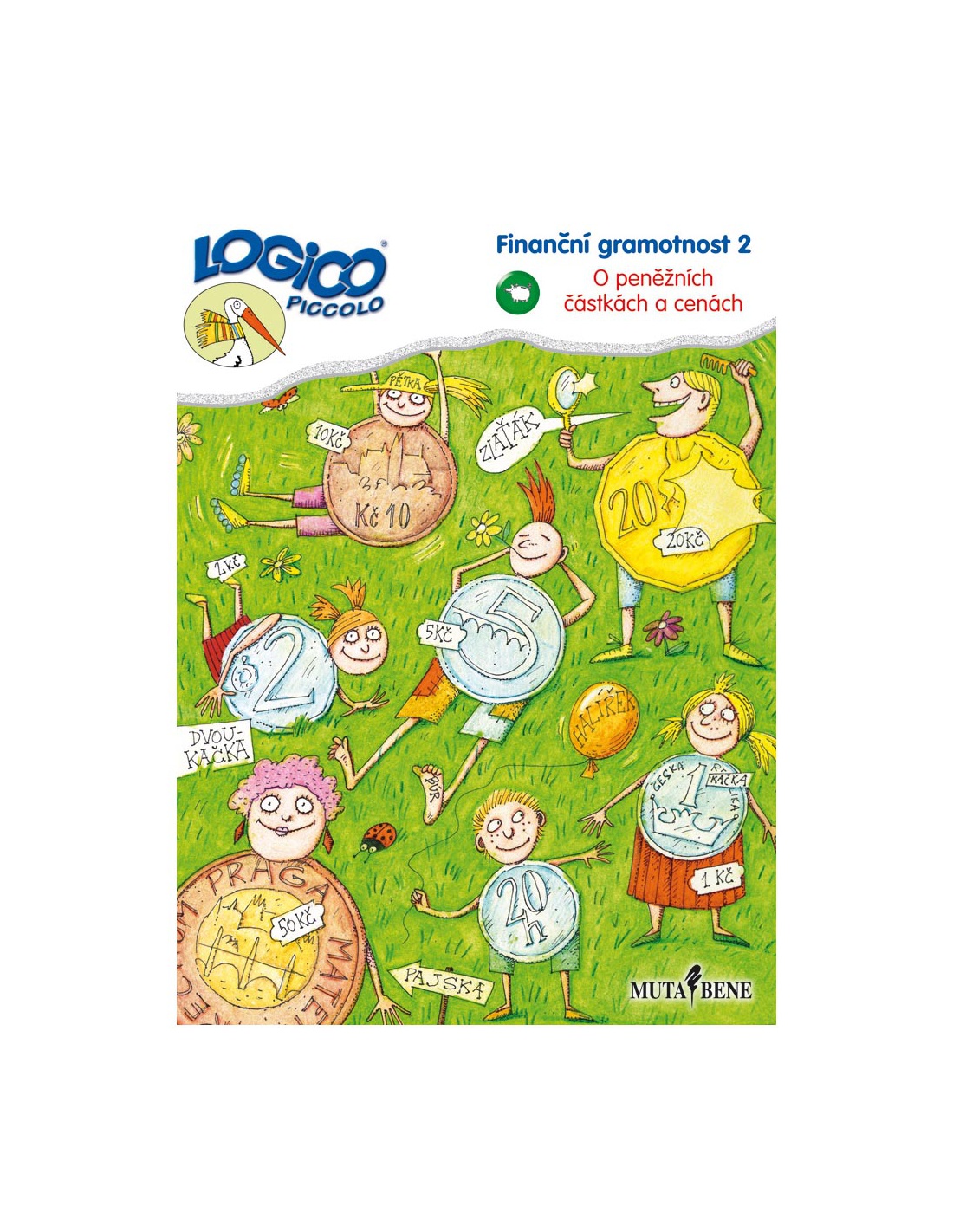 Dvoukačka a dvě Kačky Více mincí, více korun? Peněžní hromádky Kilo, kapřík a spol. Počítáme peníze Ceny v mincích Školní pomůcky Sladkosti Dobroty Vzpomínky na kartu 20 Odměna Školní výlet Vánoční bazar ve škole Vždy ve dvou mincích Obsah peněženek Slovy a obrazem V textech na zadních stranách získají děti další informace týkající se peněz a platidel. Zatímco texty v prvním díle obsahovaly informace k jejich výrobě a historii, v tomto souboru jsou zaměřené na jazykové výrazy, názvy jednotlivých platidel a synonyma hovorová a spisovná.